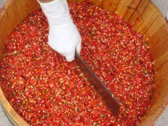 三角塘鎮(zhèn)盛產(chǎn)辣椒,肥大、肉質(zhì)鮮嫩,味道清香,在歷史上久負(fù)盛名,家家都能腌制一壇剁辣椒。秋冬交替之季,農(nóng)家從菜地摘回辣椒,洗凈、涼干、剁碎、拌鹽、放進(jìn)壇中腌制,加入茶油、蒜籽,味道更佳,揭開壇蓋,滿屋飄香。